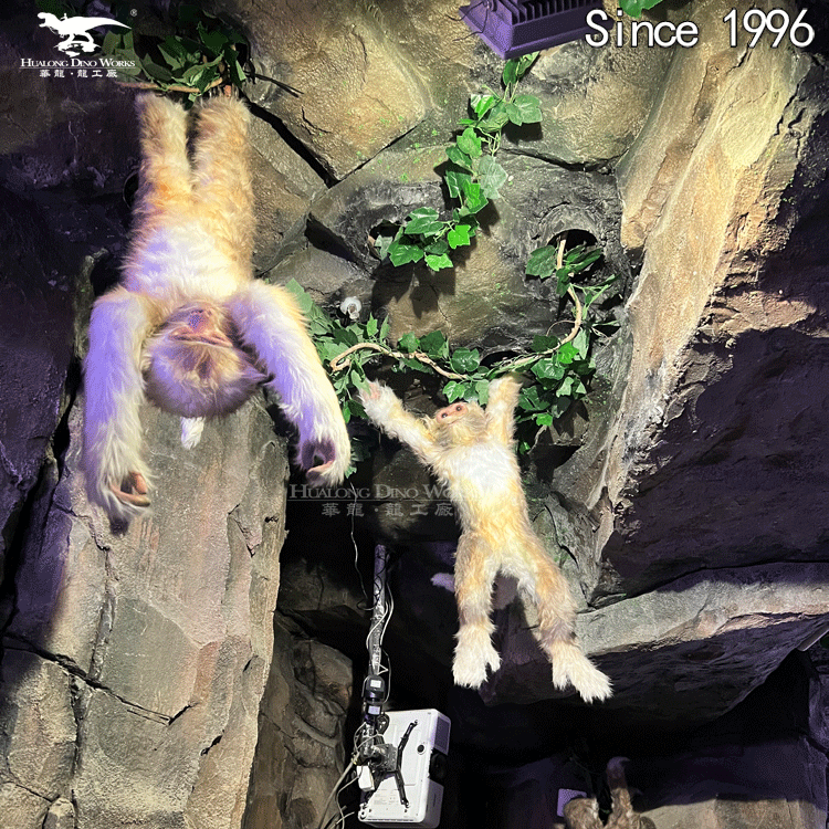 3.Lebensechte Bewegungen:Ausgestattet mit fortschrittlichen Bewegungsaktuatoren führt unsere Animatronik eine Reihe authentischer Affenverhaltensweisen aus – beobachten Sie, wie sie klettert, schwingt, nickt, blinzelt und gestikuliert, genau wie ein echter Affe, und das Publikum mit ihren spielerischen und natürlichen Bewegungen fesselt.